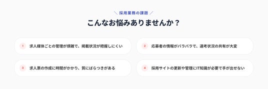 採用市場の変化により、採用担当者にはスピードと品質の両立が求められています。一方で現場では、媒体ごとの管理画面での更新、求人票の転記、掲載状況の確認、応募者対応の履歴管理など、運用タスクが増え続けています。