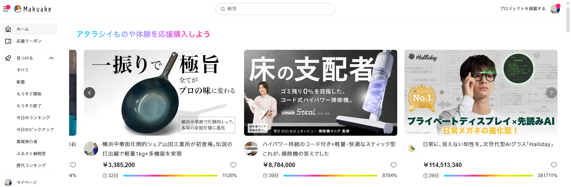 現在は MakuakeのTOPページ8枠にも選出 され、広く注目を集めています。
