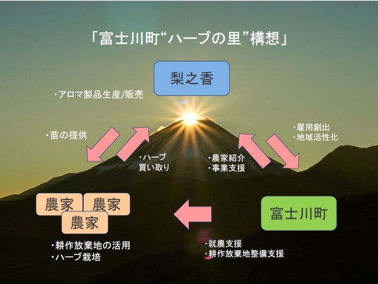 山梨県富士川町を拠点に、未利用資源を活用した香りづくりを行うブランド「梨之香」は、4月1日の「April Dream」にあわせ、将来構想として「富士川町ハーブの里構想」を発表します。