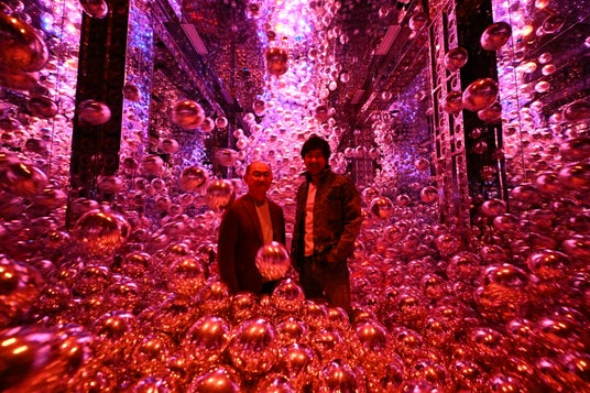 高砂熱学社長 小島様・チームラボ代表 猪子。チームラボ《浮かぶ宇宙球体》