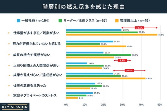 続いて階層別に燃え尽きの理由を分析しました。結果は以下のとおりです。