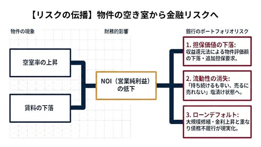 空室が増加した融資先物件では、以下のリスクが連鎖的に顕在化します。