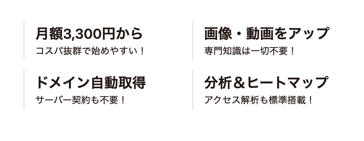 「デザインを守りたい」「コーディングで妥協したくない」という想いから、コードを一切書かずに、完成度の高いLPを誰でも作れるように設計されています。