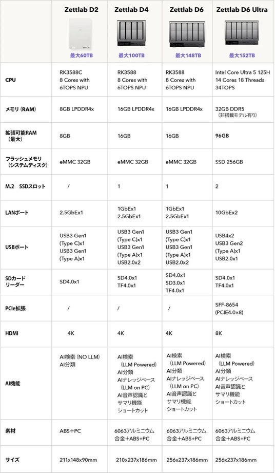 Zettlab AI NASは、日本初上陸のプロダクトとして、個人ユーザーからクリエイター、中小規模オフィスまで幅広い層をターゲットに展開します。「安心・高速・大容量」なAI NASの普及を目指します。