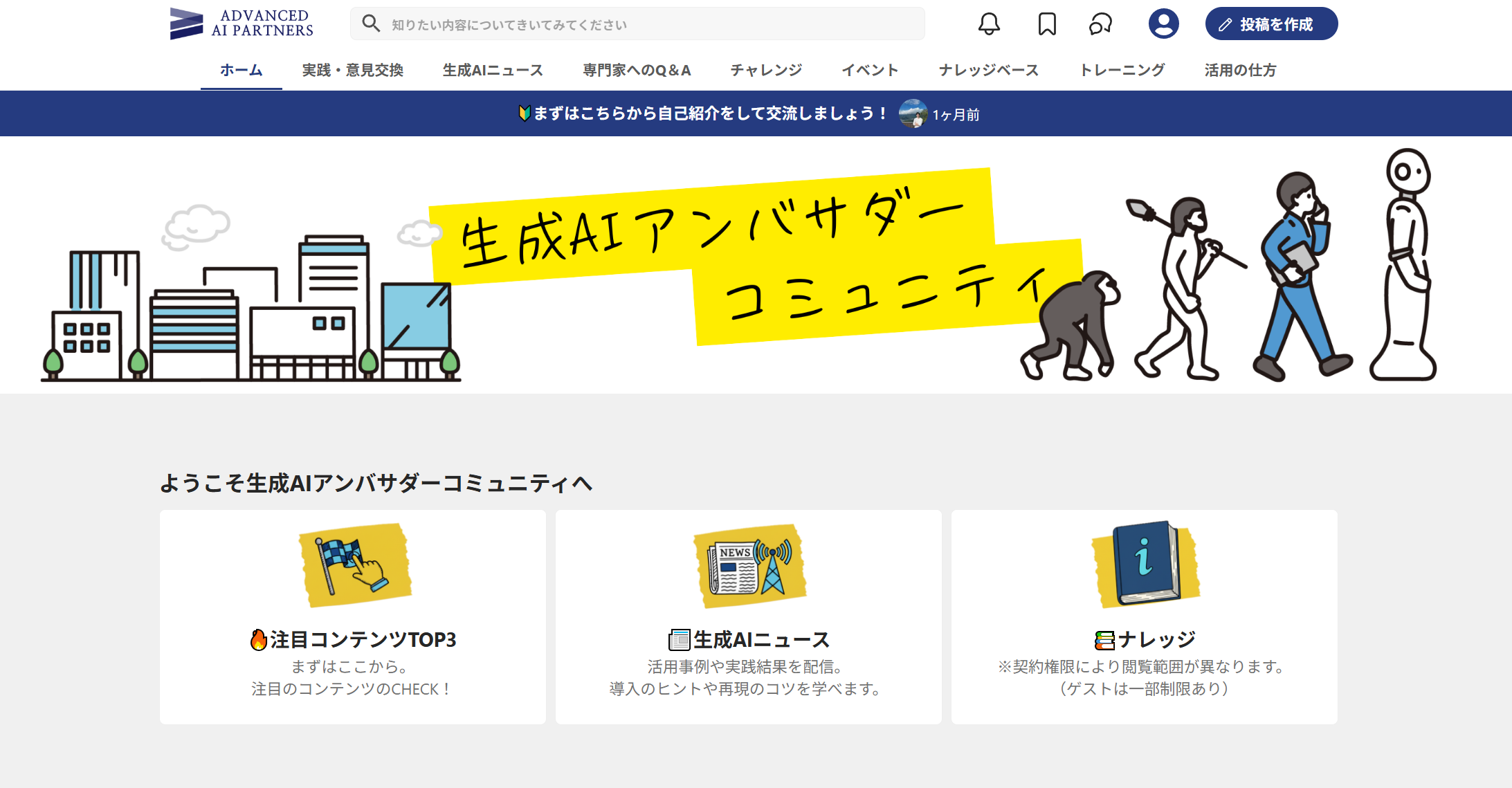 株式会社Advanced AI Partners(本社:東京都港区、代表取締役:麹池 貴彦、以下AAIP)は、企業の経営企画やDX推進部門において、生成AI活用を推進する旗振り役(リーダー)を対象とした、学び・実践・相談が一体となった統合型プラットフォーム「生成AIアンバサダーコミュニティ」を本格始動いたします。
