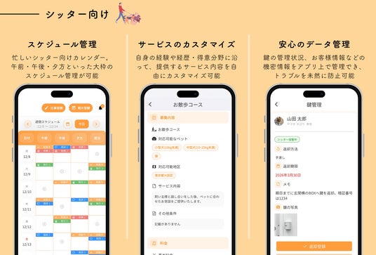 さらに50名超の現役シッターへ入念なインタビューを重ね、アプリの機能へ落とし込む“共同開発”により、シッター向けにスケジュールやデータの管理など現場の要望をUIに反映しています。