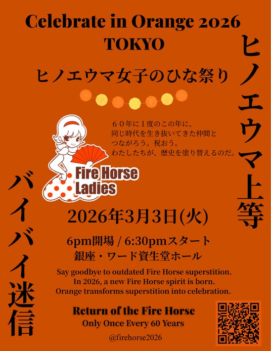 Celebrate in Orange 2026 は、60年に一度めぐってくるヒノエウマイヤーを、迷信の負の連鎖を断ち切り、「誇り」として祝うための取り組みです。