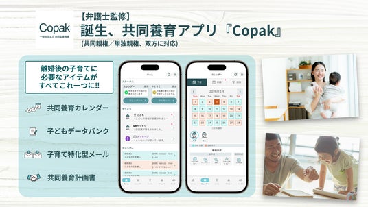 一般社団法人共同監護機構(所在地:東京都港区)は、2026年4月から日本で開始される「離婚後共同親権制度」に対応した共同親権・共同養育支援アプリ『Copak(コパック)』のAndroid版を正式リリースしたことをお知らせいたします(iOS版は4月中を予定)。