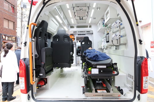 新ドクターカーはトヨタハイエースがベースの1.充実した設備と2.揺れが少なく3.車内処置領域が拡張された高規格車両