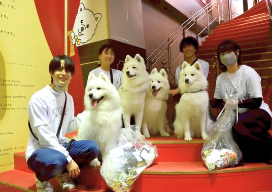 リニューアルオープン企画として、サモエドたちの散歩時間を活かした参加型の地域清掃活動を実施