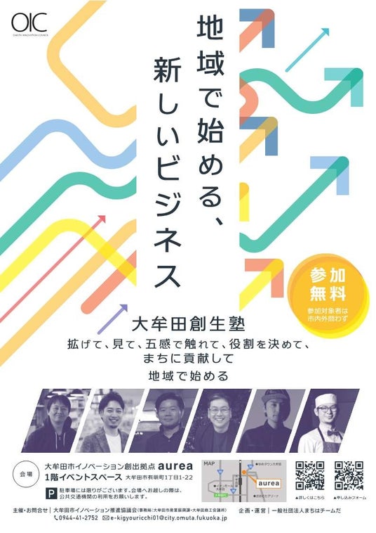 大牟田には、製造業や医療・福祉など強い産業基盤がある一方、次の一歩を踏み出したい企業やアトツギ、挑戦者も数多く存在します。本講座では、課題の発見、DXの視点、クリエイティブの活用、ファシリテーション、公の概念など、多角的な学びを通じて、地域に根ざしたビジネスの可能性を広げます。