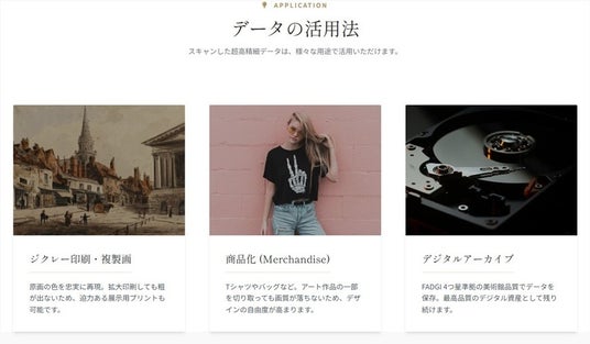 - デジタルアーカイブ: 美術館やギャラリーにおける作品の半永久的な保存データとして。