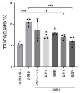 〆破骨細胞抑制効果マウス歯槽骨中の破骨細胞がエリスロマイシンにおいて抑制されたことが認められました。