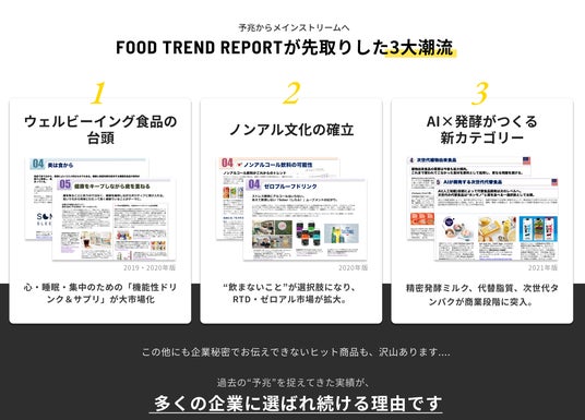 「Food Trend Reportは"なぜその味・カテゴリーが来るのか"を理解できる。20万円でこの解像度は正直本当に有り難く、⾮常に重宝している」
