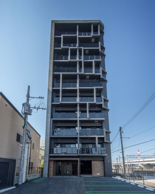 漆黒の外壁に不規則なモダンなラインのマリオンを設計。光の角度によって表情を変える立体的なデザインは、住まう人の個性を映し出し、街並みに鮮烈なインパクトを与えます。単なる居住空間を超え、都市景観の一部としての美しさと独自性を追求しました。