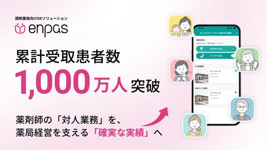 株式会社CARTA HOLDINGSのグループ会社で、リテールDX事業とヘルスケアDX事業を展開する株式会社デジクル(本社:東京都港区、代表取締役CEO:古谷 和幸、代表取締役COO:今井 悠介)が展開する調剤薬局向けDXソリューション「enpas(エンパス)」は、一人ひとりに最適化された健康サポート情報(※1)を受け取った患者数が、累計1,000万人(※2)を突破したことをお知らせいたします。