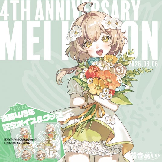 活動4周年を迎えた「 花音めい 」の「 活動4周年記念ボイス&グッズ 」の予約販売を、イコルオンラインブティックで開始