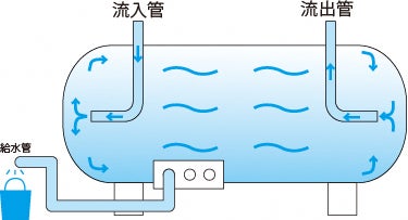 耐震性貯水槽は、平常時は水道管の一部として、水が絶えず循環する構造となっており、地震等により配水管内の流水が停止した場合に、貯水された水を飲料水として利用できるものです。