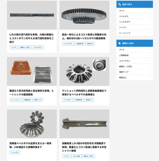 「鍛造プロセス設計」と「CAE解析」を融合させた独自の開発体制により、製品設計の初期段階から工法転換(切削→鍛造)や開発期間の短縮を提案。技術者の課題解決に直結する実例情報を集約しています。