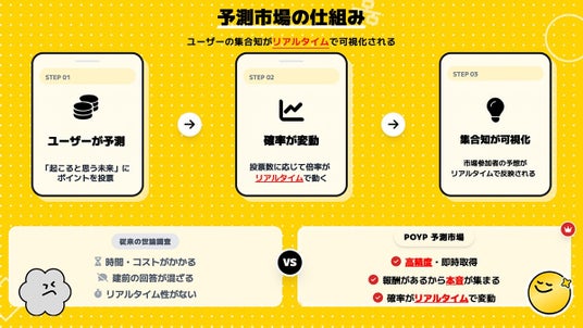 株式会社POYP(本社:東京都千代田区、以下 当社)は、予測市場の仕組みを活用したスマートフォン向けアプリ「POYP(ポイプ)」において、法人向け広告・マーケットリサーチサービスの提供を本格的に開始いたします。