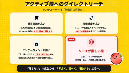 POYPのユーザーは、情報感度・購買意欲ともに高い「アクティブ(高関与消費者)層」が中心です。