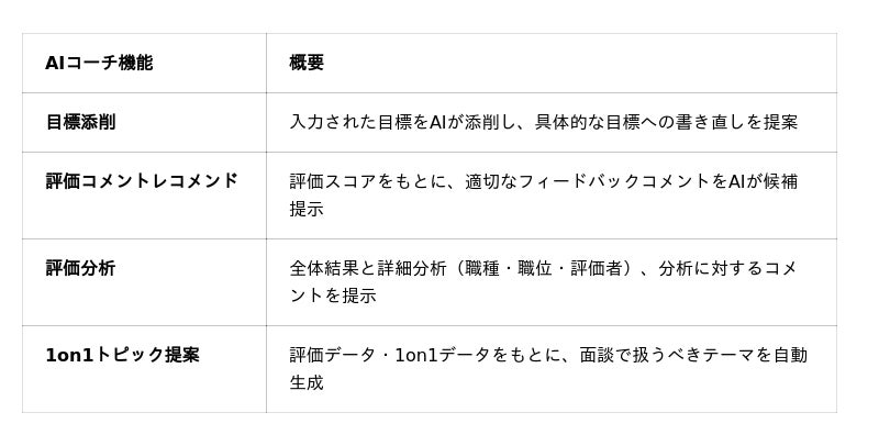 この思想のもと、Scale人事評価には標準機能として以下のAIコーチ機能が搭載されています。
