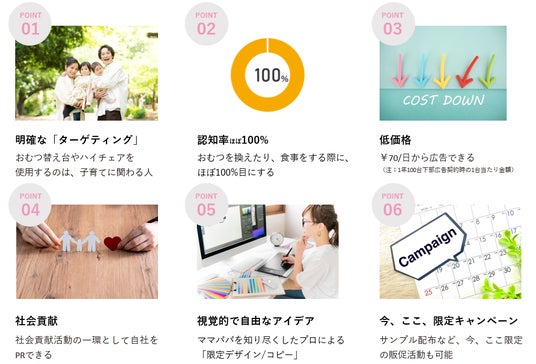 「ユニークで、赤ちゃんもママもパパも、ちょっとホッとし、ちょっと得する」広告で親子時間を創造します。