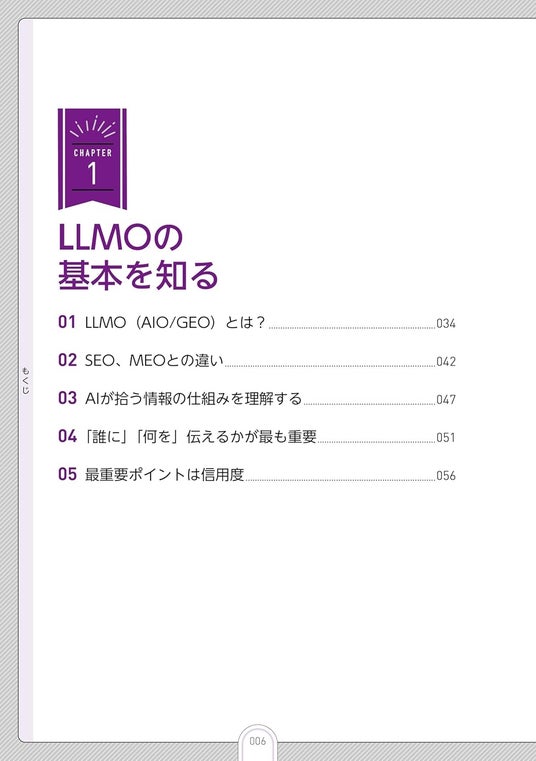 本書では、LLMOの基礎から応用までを段階的に解説しています。