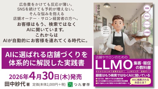 SHINKA株式会社(本社:神奈川県横浜市、代表取締役:尾田雪江)は、同社取締役である田中紗代が執筆した書籍『店舗やサロンのためのLLMO集客・販促の教科書 ゼロからはじめて成果を出す! LLMO入門・活用ガイド』を、2026年4月30日に発売いたします。
