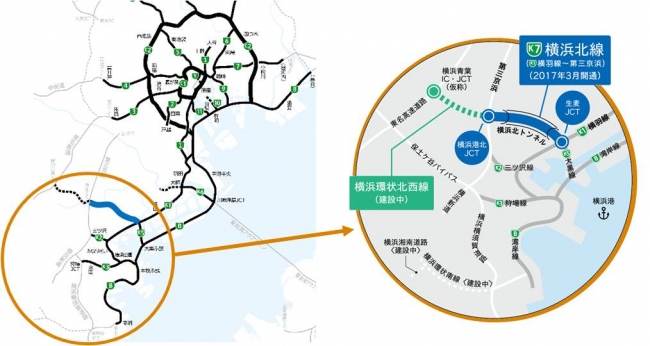 今回、横羽線および大黒線の生麦ジャンクション(JCT)から、新設される横浜港北JCTにより第三京浜道路まで接続します。