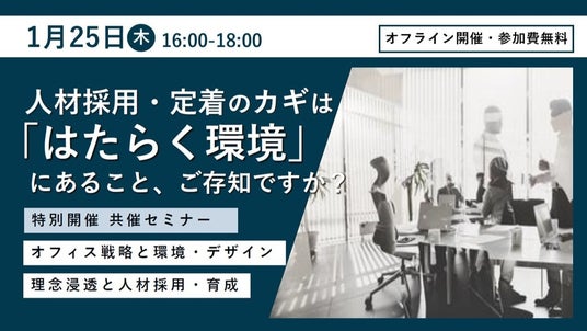 今後激化が予想される人材獲得、社員の定着、そして社員が出社したくなるオフィスづくりにおいてお役立ていただける内容です。ぜひご参加ください。