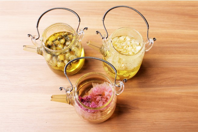 夜明け前のまだ日を浴びていない花を摘み、形や色、香りができるだけ変わらないように、独自の製法で低温乾燥しました。花茶を1つカップに入れお湯を注ぐと、花びらが開いていくと同時に豊かな香りに包まれます。