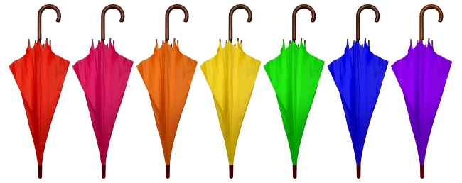 5色30本の傘を片手で傘立に仕分けする時間を競うチャレンジ