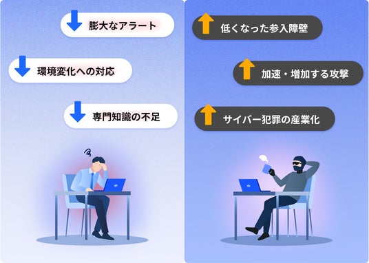 ハッカーは見落としがちな脆弱性から根の深いところに侵入してくることがほとんどで、人間によるワンタイムのペネトレーションテストでは、発見が追いつかない状況となっています。