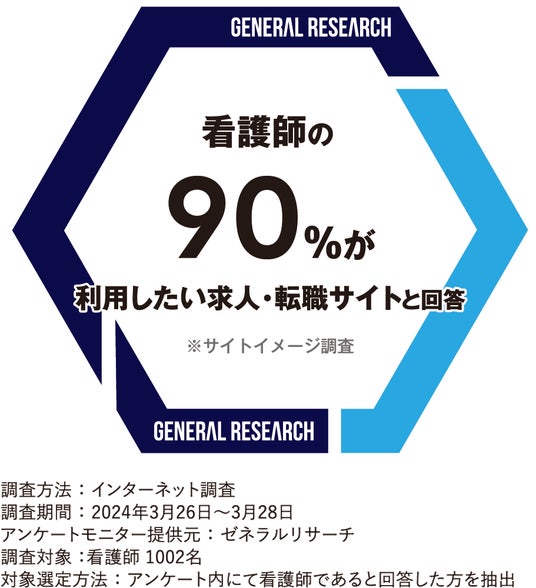 2024年3月に実施した看護師向けの調査では看護師の90%が利用したい求人・転職サイトとしてNsPace Careerをご評価いただきました。