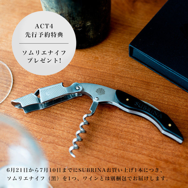 公式オンラインショップで6月21日(火)~7月10日(日)の間に予約購入いただいた方に、先行予約特典として、オリジナルソムリエナイフ(定価2600円)をプレゼントします。