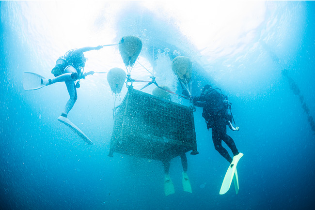 ヒリゾ浜を有する中木は、ダイビングスポットの名所であり、夏季シーズンには多くの観光客が訪れます。海底熟成作業は繁忙期である夏を避け、地元ダイバーととともに冬季に行います。