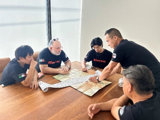 【上記2枚の写真】藤原慎也 Road to ダカール・ラリープロジェクトのメンバーである「Bivouac大阪」(大阪府高槻市)で行われた打ち合わせの様子。コラード氏によると「モロッコ・ラリー」にFANTICで出場するライダーは5ヵ国11名(予定)。大型トレーラーを中心に巨大なパドックエリアが設置され、ライダー2名に1名のメカニックが対応。チームアドバイザーには「ダカール・ラリー」のレジェンドライダーであるフランコ・ピコ氏が就任。サスペンション専門の職人やマッサージ師も帯同する等、万全なチーム体制が敷かれます。