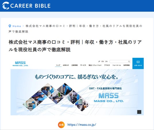 採用ブランディングメディア「キャリアバイブル」に株式会社マス商事(神奈川県横浜市、代表:升 杉夫)の企業情報を掲載しました。