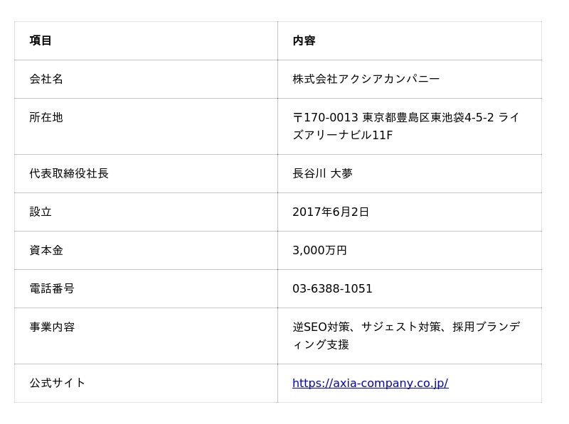 会社概要(株式会社アクシアカンパニー)