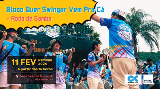東京を拠点に活動しているサンバチーム Quer Swingar Vem Pra Ca (ケール スウィンガール ヴェン プラ カ)は、2024年2月にブラジル・リオデジャネイロ市内で行われる カーニバル公式プログラムとして、現地時間2月11日(日)14時(予定)より同市内ヴィラ・イザベル地区でサンバの演奏を行います。(2年連続、コロナ禍による中断を挟み5回目)