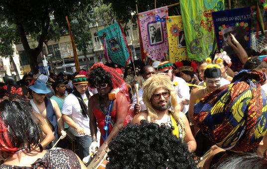 仮装してカーニバルを楽しむリオの人々
