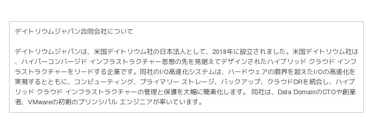 Samsung Catalyst Fundのシニア バイス プレジデント兼マネージング ディレクター、Shankar Chandran(シャンカールチャンドラン)氏は、今回について次のように述べています。 「Samsunはメモリーとストレージ技術の世界的リーダーとして、常にデータセンター技術を進歩させる斬新で革新的な方法を模索しています。 Datriumのような最先端のハイブリッド クラウド プラットフォームは、企業がデータ分析とストレージの性能問題を克服するのに役立ちます。 今はこのような技術を持った企業に対しての投資家になることに興奮しています」。