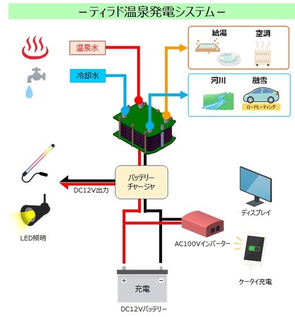 株式会社ティラドは、令和5年4月1日にグランドオープンする株式会社 湯村温泉 緑屋に熱電発電を利用した温泉発電システムを設置し実証試験を開始いたします。