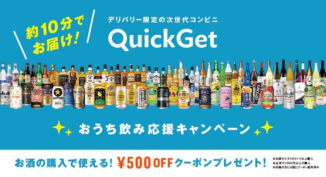 食料品や日用品など、自宅にいながら今欲しいものが店舗と同等の価格ですぐ届く、デリバリー限定の次世代コンビニ「QuickGet」を展開するクイックゲット株式会社(本社:東京都渋谷区)は、まん延防止等重点措置の発令に伴い、おうちでお酒を楽しめる「おうち飲み応援キャンペーン」を2022年2月8日に開始いたしました。また、配送エリアも新たに中目黒、広尾、港区三田の3拠点に拡大いたしました。