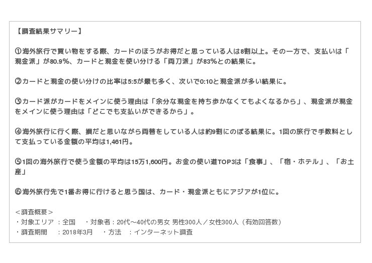 1.海外旅行で買い物をする際、カードのほうがお得だと思っている人は8割以上。その一方で、支払いは「現金派」が80.9%、カードと現金を使い分ける「両刀派」が83%との結果に。