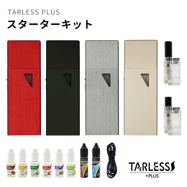 TARLESS PLUS本体と消耗品のカートリッジ、リキッド(お好きな2本)が全て入ったスターターキット。