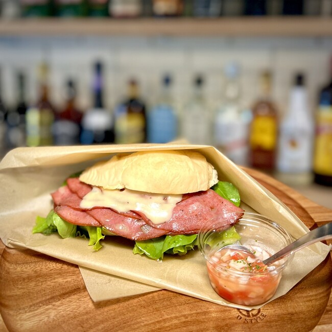 数種のハーブを調合したオリジナルのシーズニングで味付けした牛バラ肉のサンドイッチは、2種類のチーズが肉と絡まり食べ応えのあるボリューミーな仕上がり。