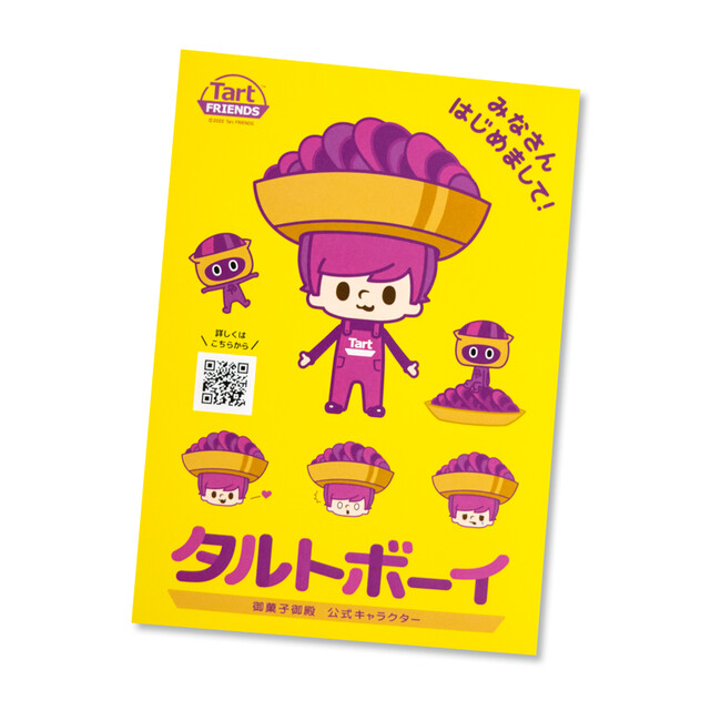 『Tart FRIENDS(タルトフレンズ)』は御菓子御殿のお菓子をモチーフに、デザイナーPansonWorks (パンソンワークス)がデザインを手がけました。この度発表する「タルトボーイ」「タルツ」をはじめ、今後、様々な キャラクターが登場する予定です。