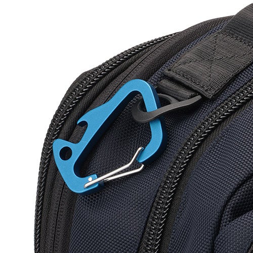 内装やファスナー引手など、アクセントにはANAを象徴するブルーを採用。さらに、六角ボルトや工具を模した引手、航空機カーゴのネット(航空機に貨物を搭載する際に、貨物を固定するためのネット)をイメージしたメッシュポケットなど、航空ファンの心をくすぐるモチーフを取り入れています。